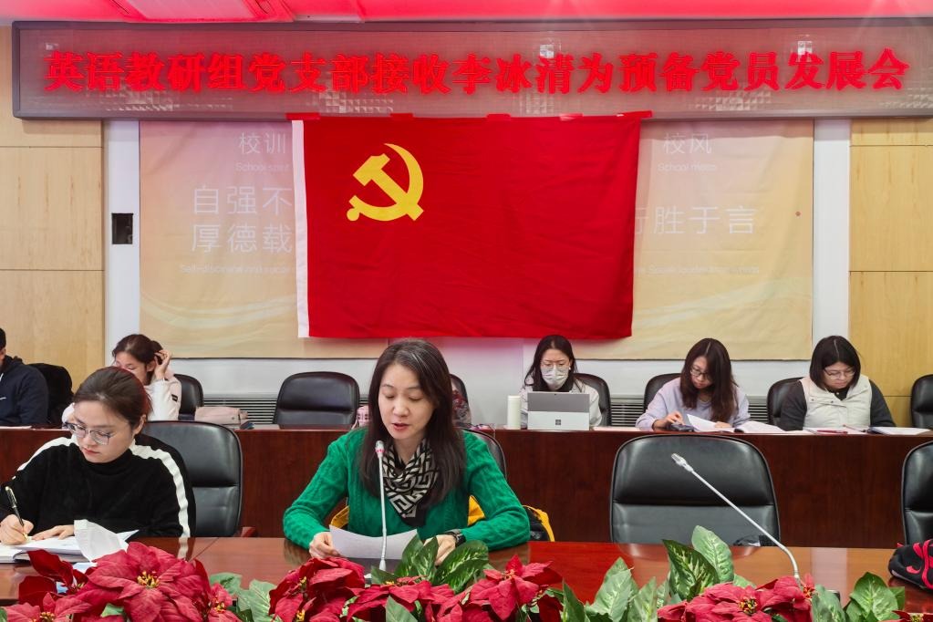 11月21日下午,澳门博彩在线英语教研组党支部在B102会议室召开预备党员发展大会。清华附中党委书记曹海翔、英语教研组党支部全体党员和入党积极分子参加了本次预备党员发展大会,会议由支部书记黄丽梅主持。
