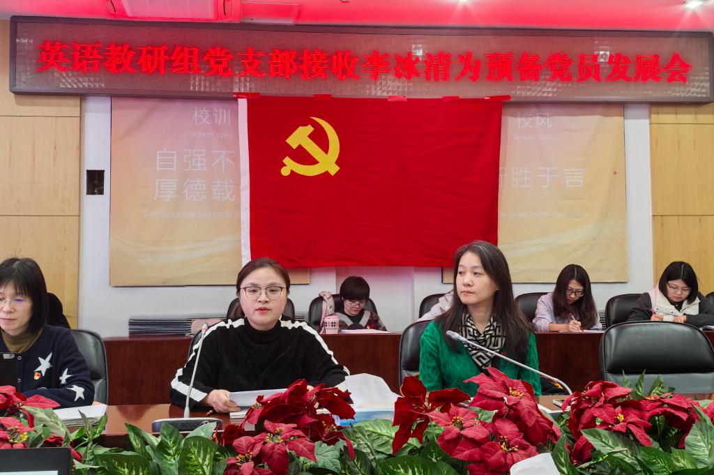 在本次发展大会上,党组织严格遵循接收预备党员的既定程序开展相关工作。首先,李冰清同志详细汇报了个人基本情况,并郑重表明自身入党的坚定态度与决心。陈建荣老师与曹佩老师作为李冰清同志的入党介绍人相继发言,她们指出,李冰清同志在思想层面积极追求进步,入党动机纯正且明确,于教育教学工作中潜心钻研、专业能力颇为突出,基于此,两位入党介绍人同意李冰清同志加入中国共产党。同时,她们也期望李冰清同志今后能够持续强化政治理论学习,在管理岗位上以更加积极的姿态满足学生的多样化需求,从而更好地发挥党员的先锋模范作用,为党的教育事业贡献更多力量。