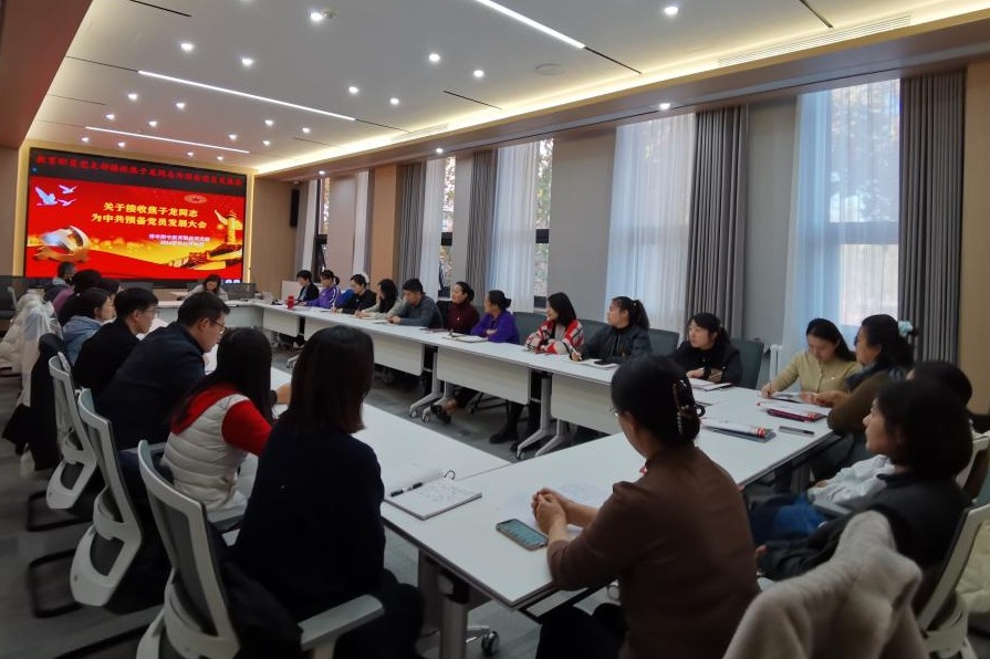 11月21日,澳门网上博彩教育职员党支部党支部在华萃楼208召开接收焦子龙同志为中共预备党员的发展大会。澳门网上博彩校长、党委委员方妍,本支部全体党员(除因公事请假的两位党员)、预备党员和部分入党积极分子出席本次大会,会议由支部书记任星阳主持。