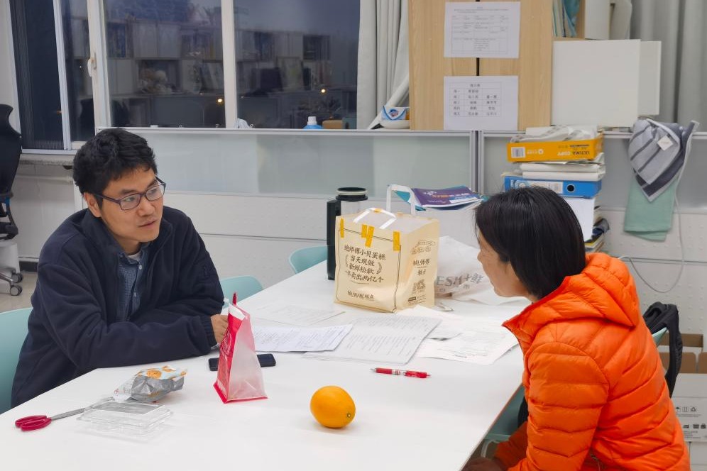 各科老师进班分享后,又与家长进行一对一交流,对学生学习的具体问题给予指导,为家校共育提供有效建议。