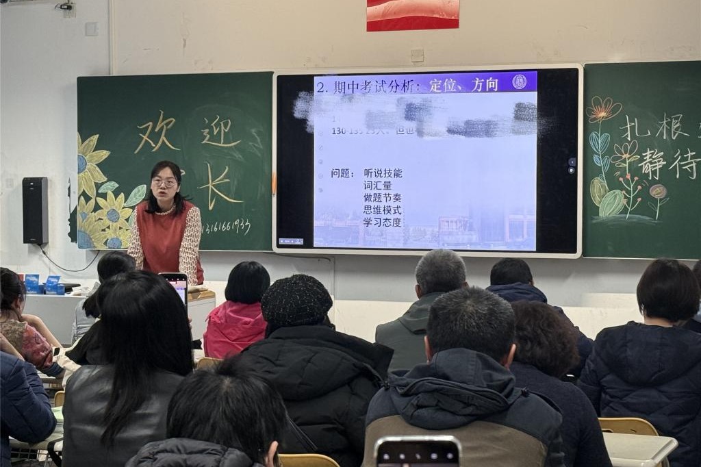 会后,各位家长听取班级家长会。作为高一阶段第一次全面的家校会谈,班级家长会由班主任主持,进行带班理念、班级活动、期中情况分析等方面的的家校沟通。语文、数学、英语等学科教师也进班分享现阶段学习情况,进行学法指导。