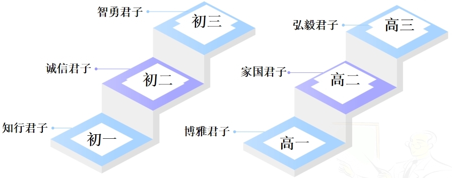其中,在“君子文化”德育课程中,初中学部分别以“知行君子”“诚信君子”“智勇君子”为培养目标,重视学生个人品格的完善,高中学部以“博雅君子”“家国君子”“弘毅君子”为培养目标,侧重引导学生承担社会责任。唐老师进一步从“学段、课程解读、认知与理解、情感与体验、意愿与行动、活动举例”六大维度,对君子目标进行细致入微的分解说明,帮助与会者对学校德育课程体系有更宏观的理解与更清晰的认识。