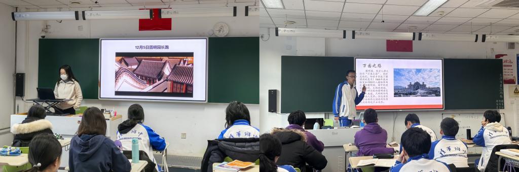 该活动分两个阶段进行:第一阶段,由历史备课组教师为同学们准备圆明园的相关史料,学生学习后在班级开展宣讲活动,让同学们了解圆明园由兴建到被掠夺、焚毁再到重建的历史,增进对中国近代史的理性认识。第二阶段,高23学部全体学生走进圆明园,参加冬季长跑活动,在强身健体的同时,身临其境地感受圆明园遗址的历史和当下,从而增进对中国近代史的感性认识。
