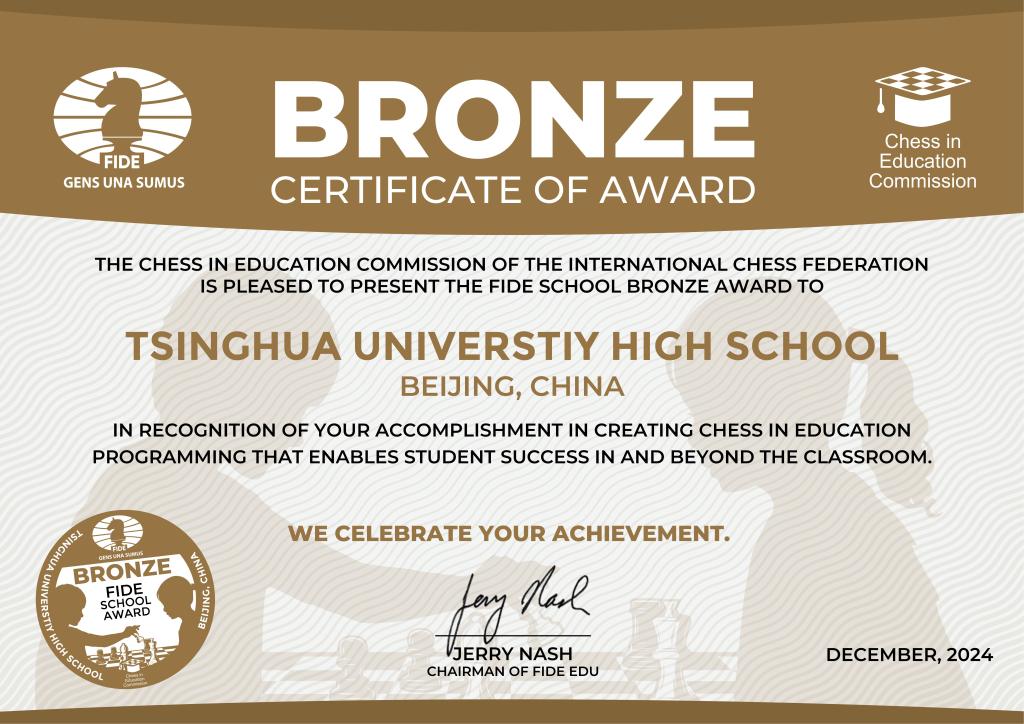 此次获得具有国际性质的国际棋联学校奖,是国际棋联对我校国际象棋事业的高度肯定和鼓励。在此次申报参评过程中,赵晨光老师承担提供素材的工作,国际部龙宇清老师负责翻译和润笔。