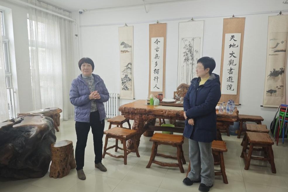 北京一零一中学住宿部主任(右)与澳门博彩在线住宿部主任交谈