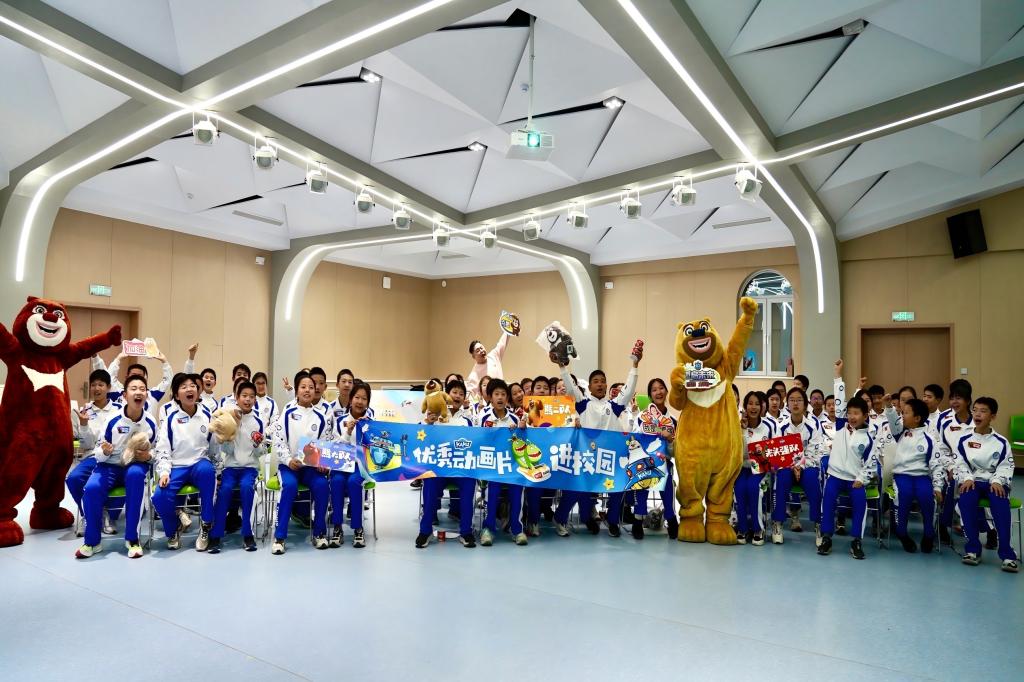 活动当天,多功能厅内非常热闹,同学们满怀期待地等候着这场特殊的“动画美育课”。随着卡酷主持人的闪亮登场,以及备受欢迎的熊大、熊二的惊喜亮相,现场气氛瞬间被点燃。