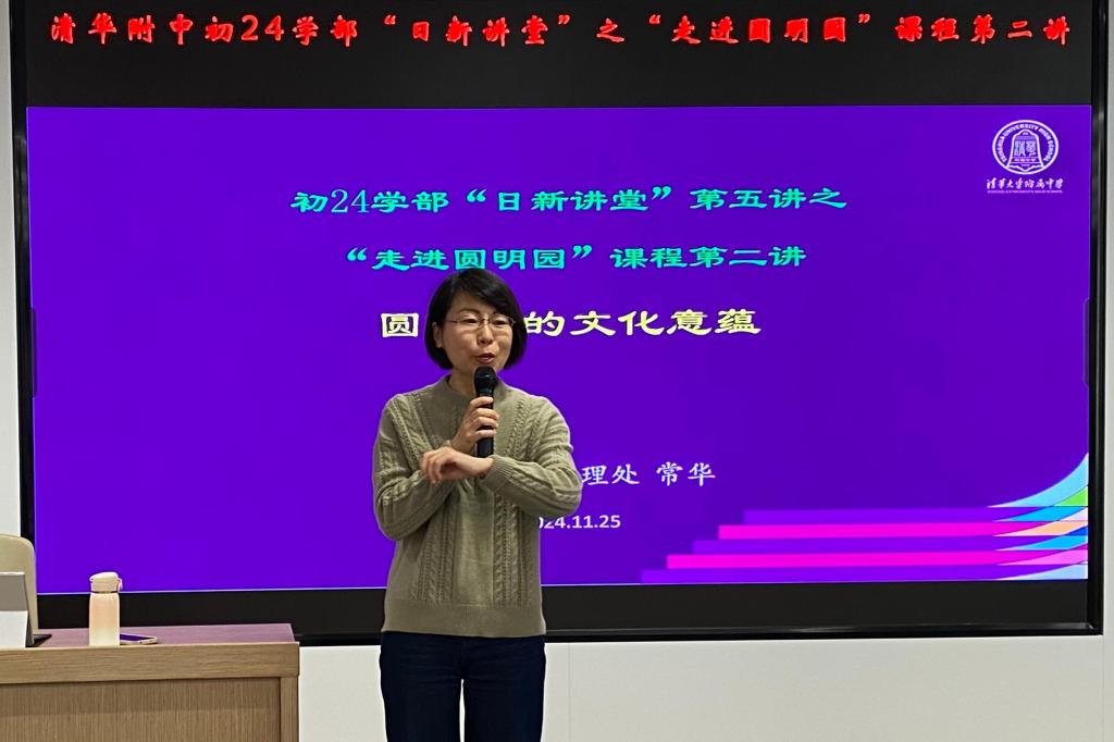 作为“走进圆明园”课程的第二讲,学部在11月26日邀请圆明园管理处常华老师为学生做了题为“圆明园的文化意蕴”的主题讲座。该讲座讲解了圆明园的历史、景点特色、文化意蕴、经历的浩劫等,帮助学生们进一步了解圆明园。