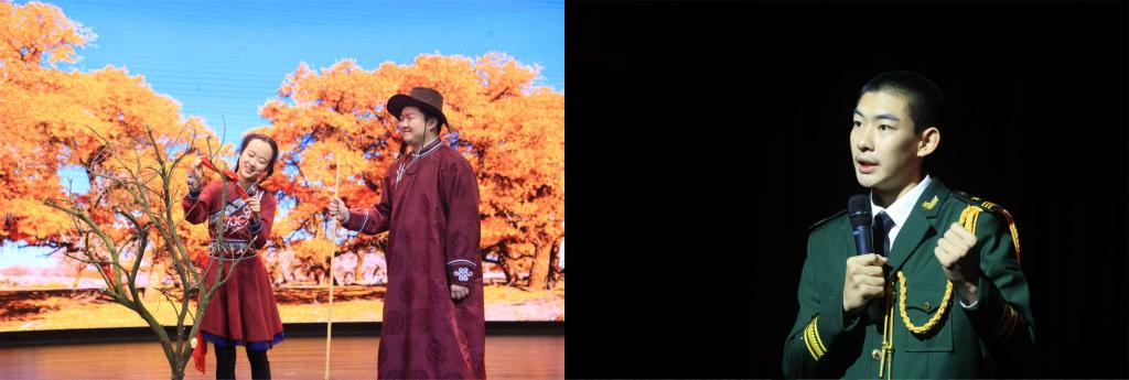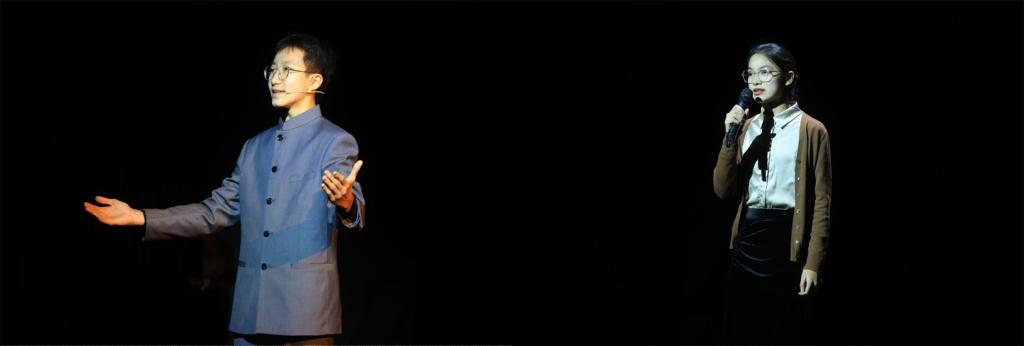 诗朗诵(左起:梁靖涵、孙一然、邓新颖、张晗岳)、主题曲演唱(左起:张昊博、熊浩然)
