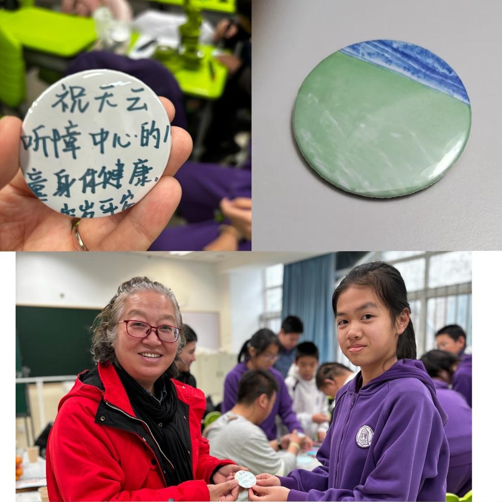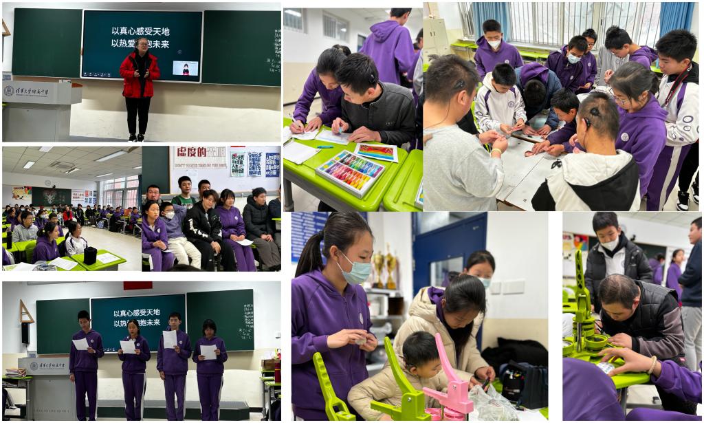 下午,大家从圆明园返回附中,参加了“以真心感受天地,以热爱拥抱未来”主题班会。班会设计了五个以“爱”为主题的特色活动:爱在旋转间(魔方)、爱在画笔下(画画)、爱在圆圈里(徽章制作)、爱在手心里(陶泥)和爱在手指尖(折纸)。在这些活动中,听障儿童们虽然无法像正常孩子那样听清楚声音,但他们用心去聆听、去感受,积极参与各种小游戏。当他们在同学们的指导下完成自己的作品时,激动之情溢于言表。同学们也把自己做出来的小手工送到听障儿童手中,他们的笑容如同阳光般温暖人心。