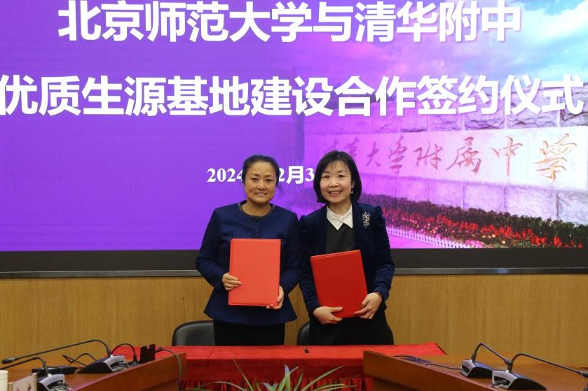 北京师范大学与我校正式签署了优质生源基地建设合作协议,标志着双方在教育领域的深入合作迈出了坚实的一步,为培养高素质人才打下坚实基础。