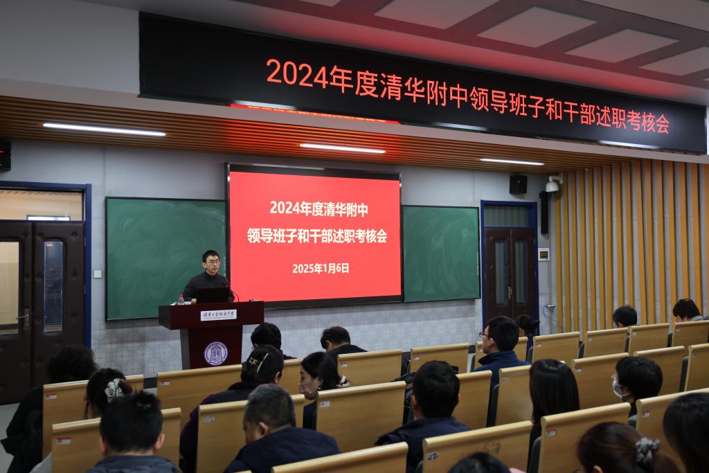 1月6日下午,澳门网上博彩召开2024年度学校领导班子和干部述职考核会。澳门网上博彩全体党政班子成员、中层干部、教研组长、年级组长、在职党支部书记、部分办公室负责人近60人参加会议,清华大学党政办信宁老师出席会议。会议由党委书记曹海翔主持。