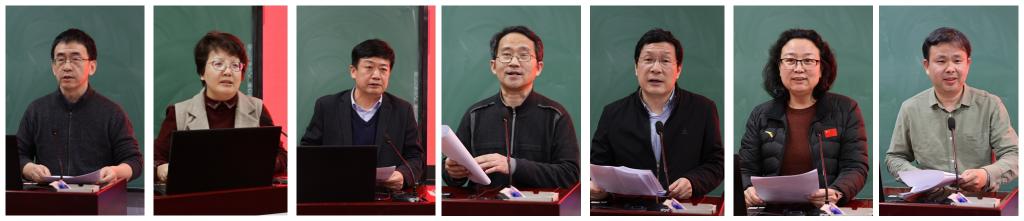 左起:党委书记曹海翔,党委副书记张洁,党委委员、副校长白雪峰,党委委员、副校长徐文兵,党委副书记、纪委书记魏磊,党委委员、副校长张苏,党委委员、副校长周建军述职