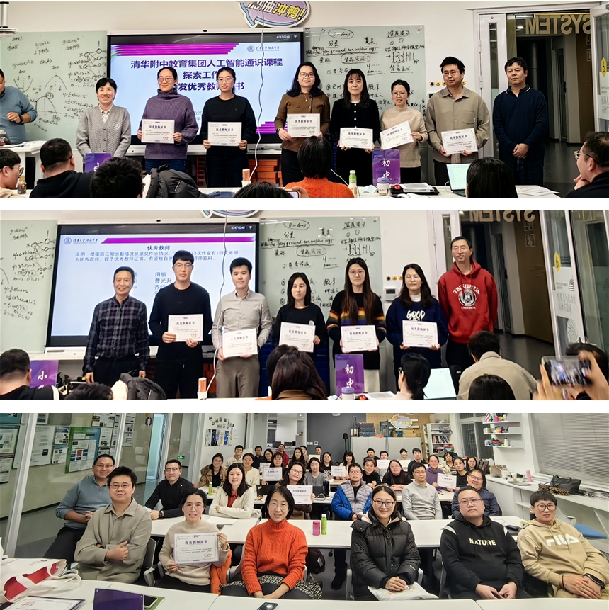 在活动尾声,老师们一同回顾了四期工作坊一路走来的精彩瞬间,为这段充实的学习之旅画上温馨句号。现场举行了结业、评优与聘任仪式,向参与的老师们颁发结业证书,表彰表现优异的老师并授予优秀教师证书,肯定他们在人工智能教育探索中的付出与成长,同时向参与工作坊培训的专家老师颁发聘书。