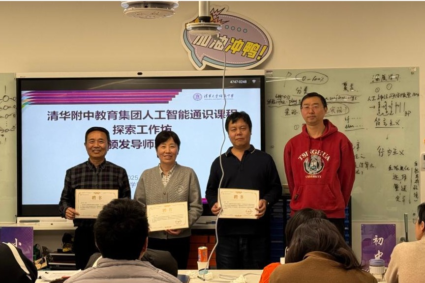 清华大学计算机系马少平教授、清华大学北京国家信息研究中心副研究员王东老师、清华大学出版社分社社长丁岭、中国传媒大学教授郭艳民等培训专家,与来自21所澳门博彩在线教育集团校的45名各个学科的教师齐聚一堂,共同完成了四期人工智能探索工作坊培训。澳门博彩在线副校长徐文兵、校长助理王田、科技办公室主任谭洪政老师全程参与工作坊活动。老师们与专家团队集思广益,共同推进清华大中小人工智能通识教育课程建设。