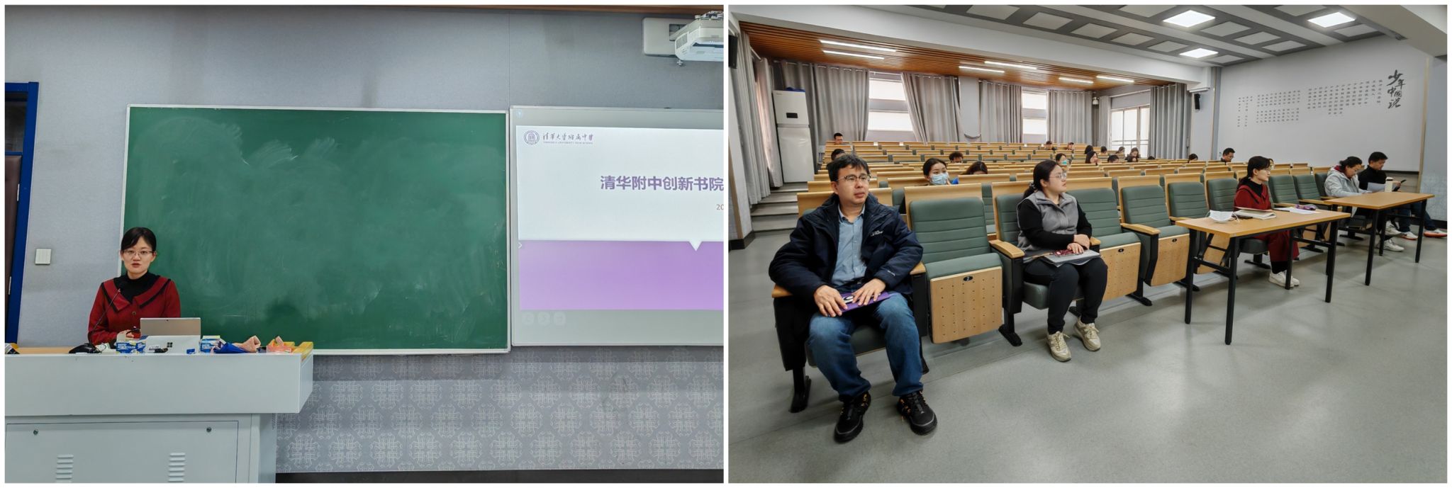 徐文兵副校长在讲话中系统阐述了创新书院的育人目标与培养理念,强调以“家国情怀、国际视野、拔尖创新”为方向,构建“基础+拓展+研究”三级课程体系,通过学科课程、初高衔接课程及竞赛高研课程,分层培养学生学术能力与创新思维。针对如何进一步提升课堂效率,丰富教学方式,徐校长指出:一是强化常态化听课督导,优化教学设计,增加探究式、项目式学习比重;二是推进AI工具辅助教学,创新课堂模式,打造“有生命力的课堂”;三是建立跨学段沟通机制,统筹竞赛课程安排与安全管理。徐校长表示,书院将持续深化教学评价改革,以“八不要”原则规范教学行为,推动教师队伍专业成长,确保育人目标高质量落地。在当前教育信息化和资源共享的背景下,徐校长对老师们提出录课要求,以提升教学质量,扩大优质教育资源覆盖面。