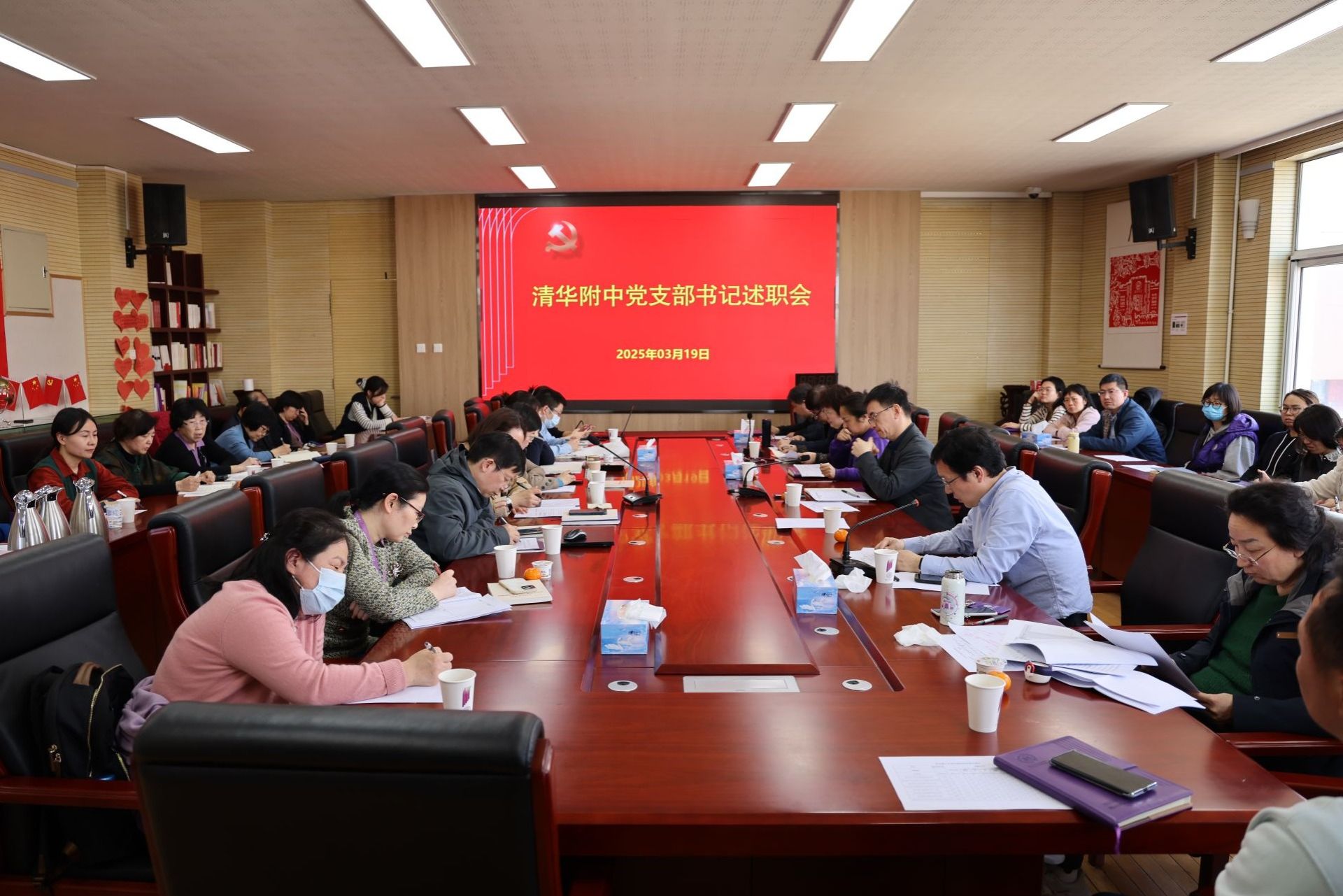 根据清华大学党委的部署,3月19日,澳门网上博彩党委组织2024年度党支部书记述职评议考核工作。全体在职与离退休教职工党支部书记参与评议。附中党政班子全体成员、各支部支委代表、党员代表近40人出席评议,党委副书记张洁主持会议。
