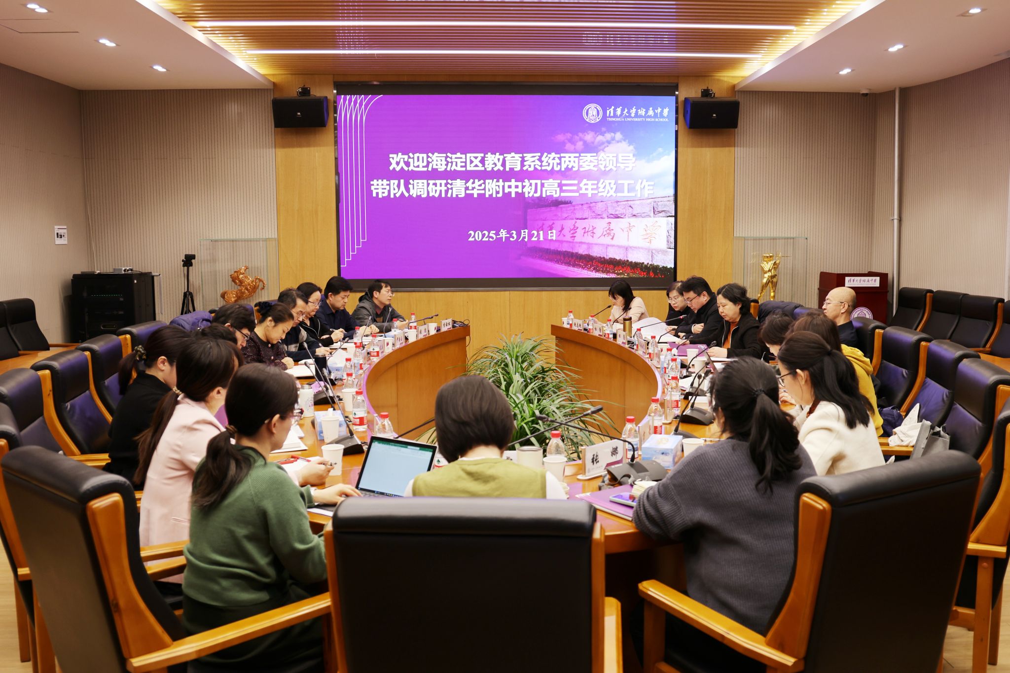 领导专家一行首先走进课堂,调研高三学部教育教学常态。随后在成志楼101会议室召开座谈会,会议由海淀区教委基教二科科长田圆主持。
