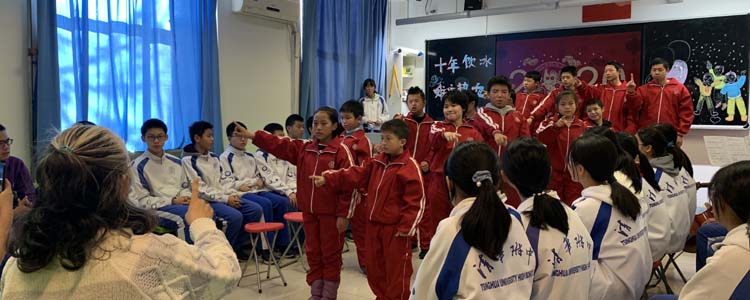 愉快的旅程就要结束了,同学们与天云的师生恋恋不舍,击掌告别。
