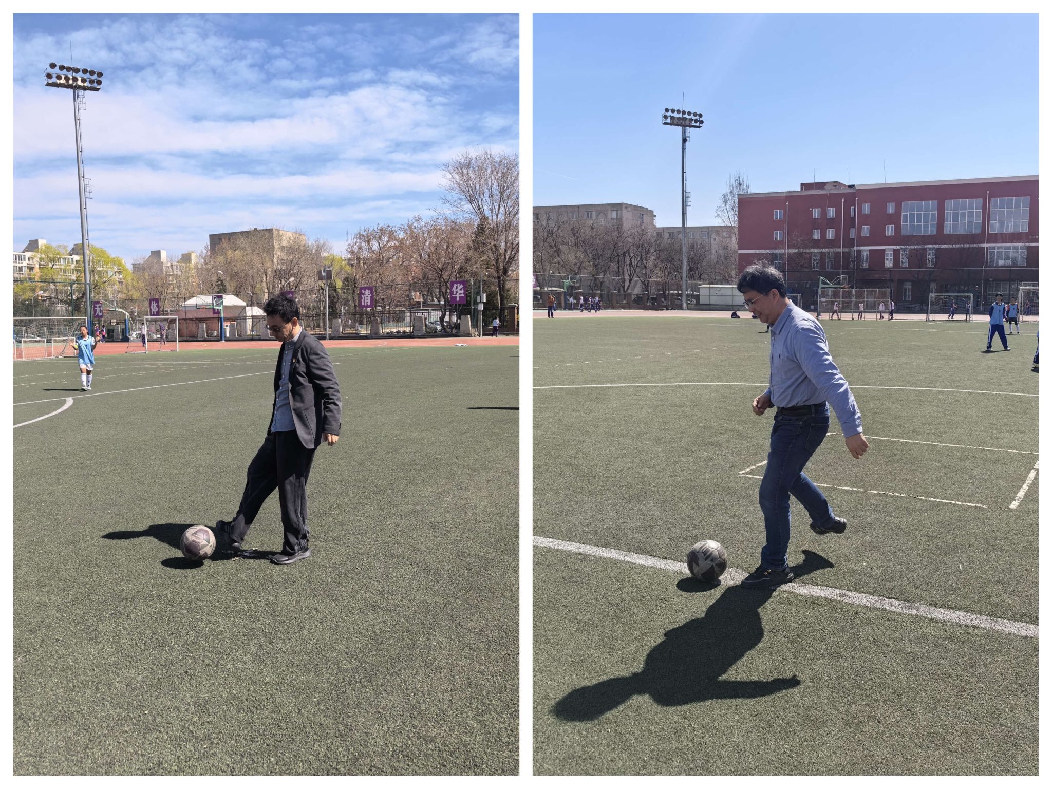 校党委书记曹海翔老师、副校长周建军老师为表演赛开球