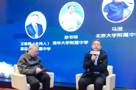 在随后的“名校圆桌论剑”环节,我校孙书明老师与其他四位来自北京、上海的老师一起,探讨了“创始人‘偏科现象’与拔尖创新人才培养”问题。孙老师详细介绍了澳门博彩在线对于培养拔尖创新人才的重视以及多元、立体、丰富的培养机制,提出对于“偏科”人才,应当以适当的教学方法加以引导,并给予相应的“托底”和保障,为他们更好地发挥自身的优势提供合适的土壤。