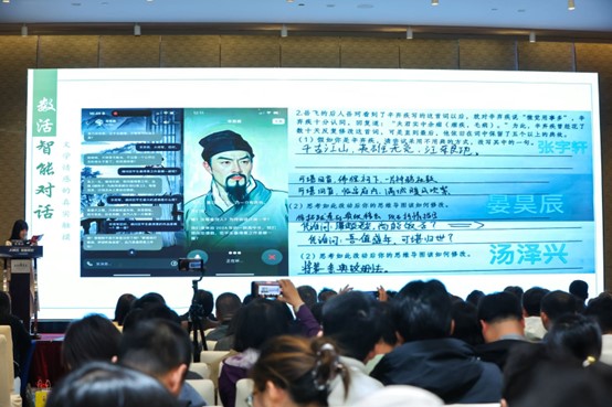 当天上午的会议主题是AI与教学赋能。来自上海的四位学科教师代表分别分享了利用AI技术辅助教学的经验:他们或是利用AI大数据分析课堂过程和授课效果,并在其基础上提出改进策略;或是通过不断改进提示词,引导学生在善用AI的同时,思考创作的过程;或是通过与AI智能体对话,使课本上的古人“活起来”,带给学生更为生动的课堂体验;或是通过AI建模,帮助学生研讨数学原理的基础上,解决实际的工学问题。四位老师各显神通,呈现出教育教学与人工智能技术的深度融合。