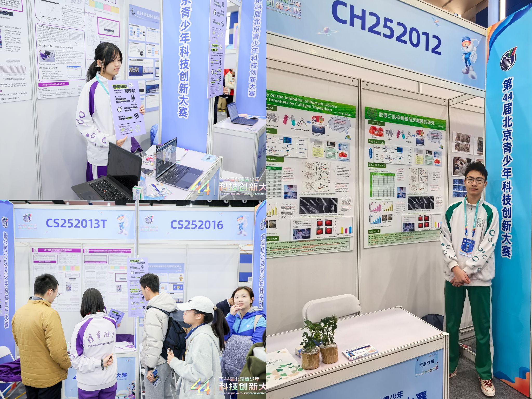 学生在比赛现场(左上:徐冰瑶;左下:杨雅涵;右:国家恺)