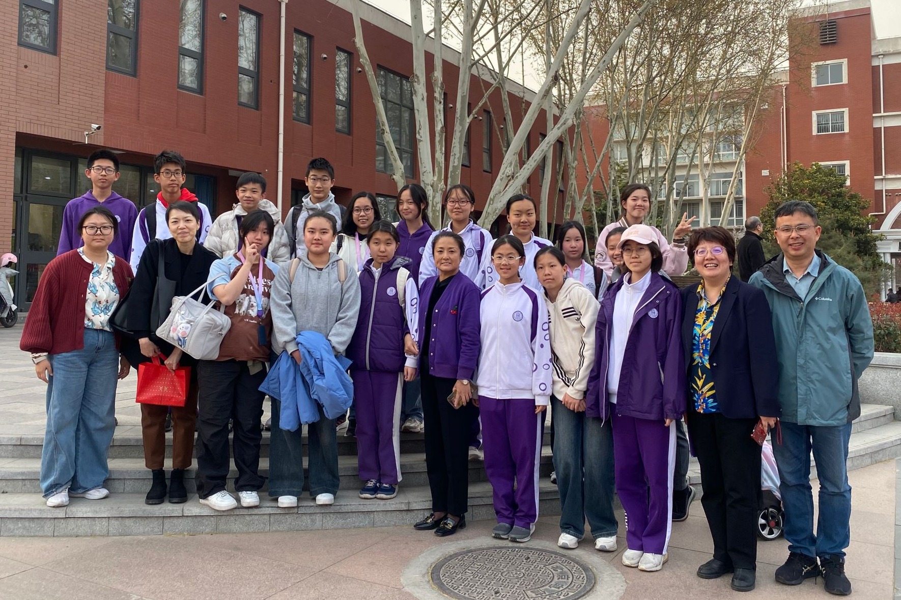 两校师生在光阴广场合影并为附中110周年生日录制祝福话语