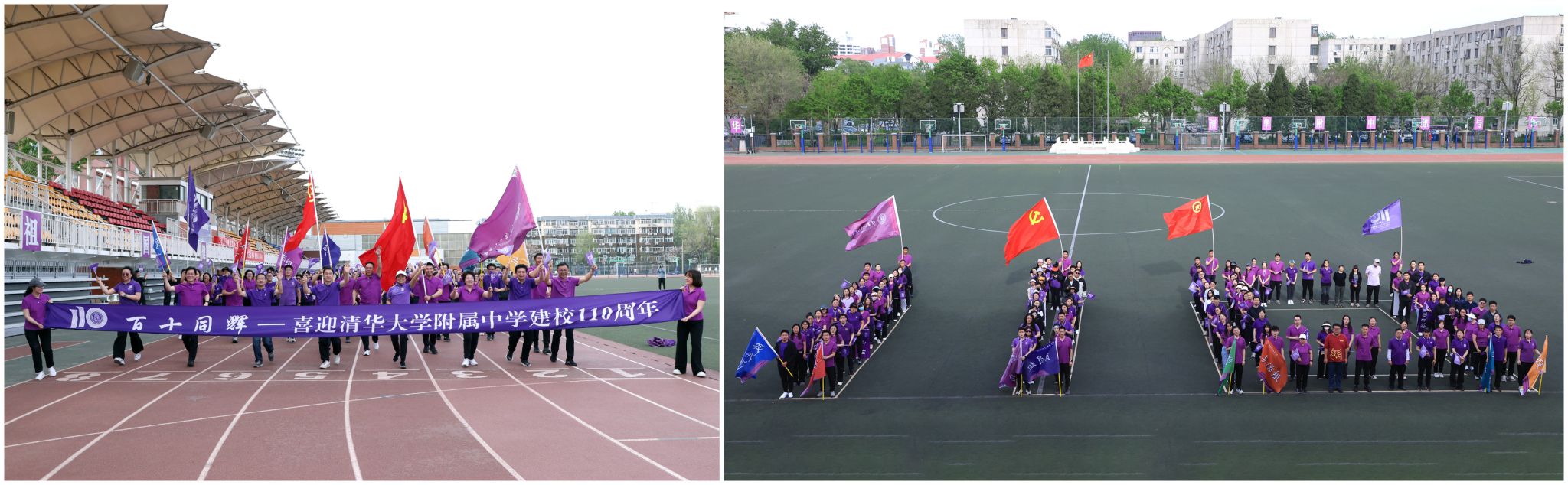 薪火不熄,征途永续,第二环节,外场接力队伍汇聚至操场,全体教师冲过代表附中历史的一道道条幅,重溯我校一百一十年的时光。从1915年的成志学校开始,清华风骨在附中校园里扎根,也在战火中越发坚韧。跑过50年代的清华大学附设中学,来到60年代澳门博彩在线定名的时刻。百年名校,辉光日新,新时代的附中扎根“为党育人”初心,以“时代为志”的格局浇筑基础教育丰碑。