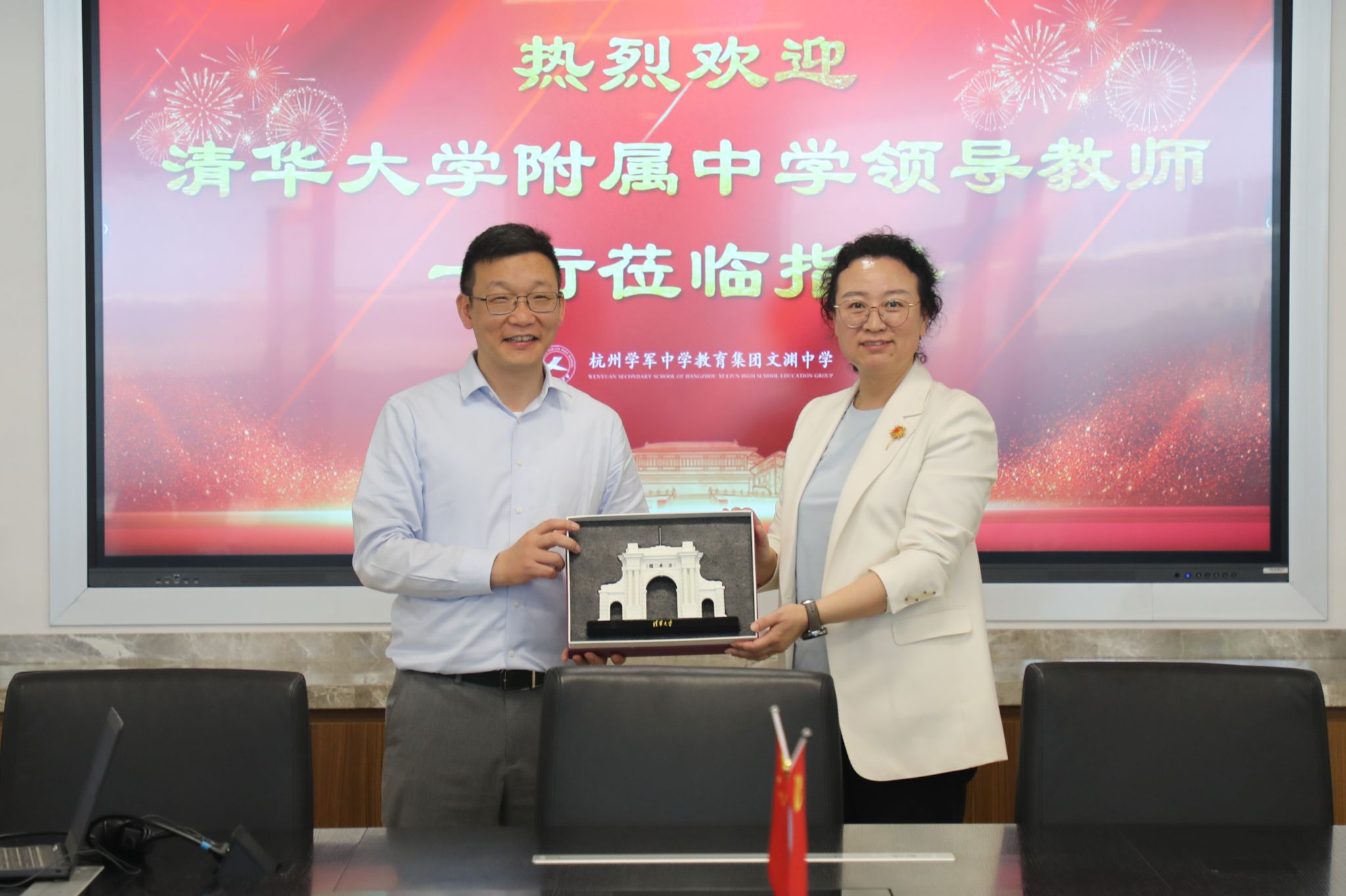 副校长张苏向杭州学军中学文渊校区赠送纪念品