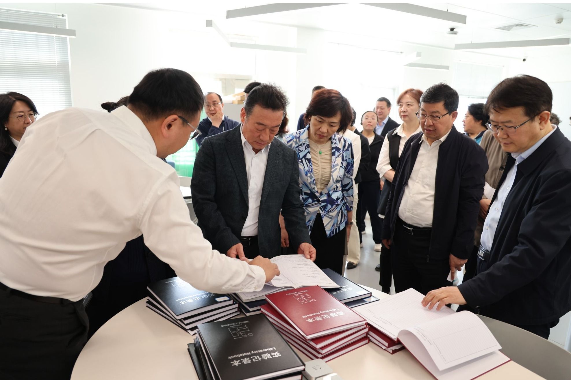 人大代表团查阅学生实验记录