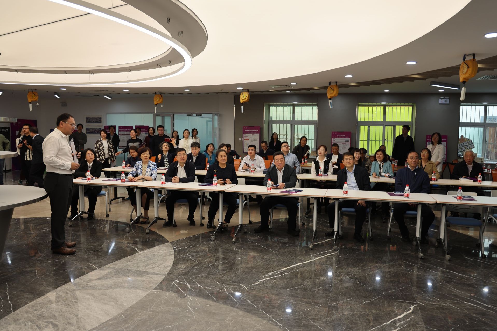 方妍校长在汇报中指出,学校自2013年创建全天候开放的创客空间以来,持续深化科技教育改革。2015年与美国托马斯·杰斐逊科技高中合作建立高研实验室体系,现已形成涵盖七大领域的实验室群,分别是机器人与自动化实验室、能源系统实验室、计算机科学实验室、资源环境与地理信息实验室、生命科学实验室、化学分析实验室、波音航空航天实验室。特别值得一提的是,2023年学校开设的海淀区人工智能实验班,面向全区招生,提供包含数学思维、程序设计等内容的免费课程,目前已形成特色培养模式。