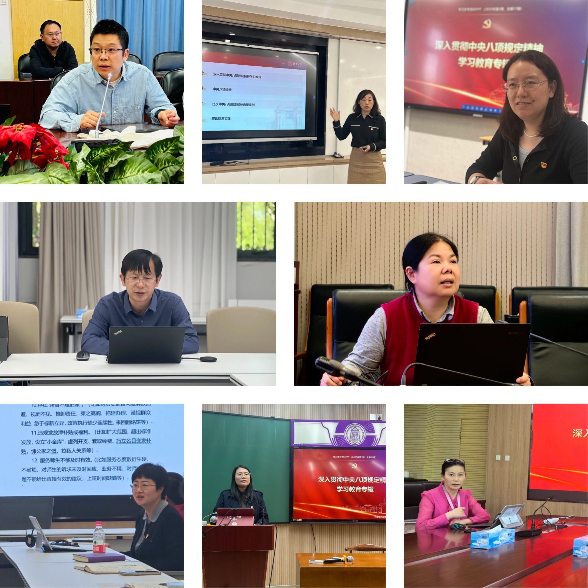 各支部书记也精心准备党课内容,结合《深入贯彻中央八项规定精神学习教育专辑》学习资料,为党员们解读了中央八项规定精神的内涵和要求,并通过实际的案例分析,强调要将中央八项规定的相关要求融入日常教学和工作生活中,切实将学习落到实处。同时,支部对照清单,深入开展自查自纠工作,深挖问题根源以及背后反映出的作风问题,一体推进学查改。