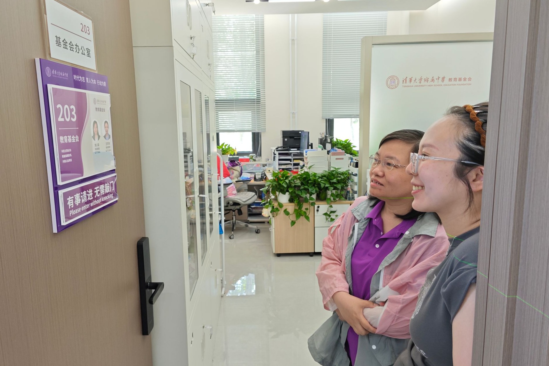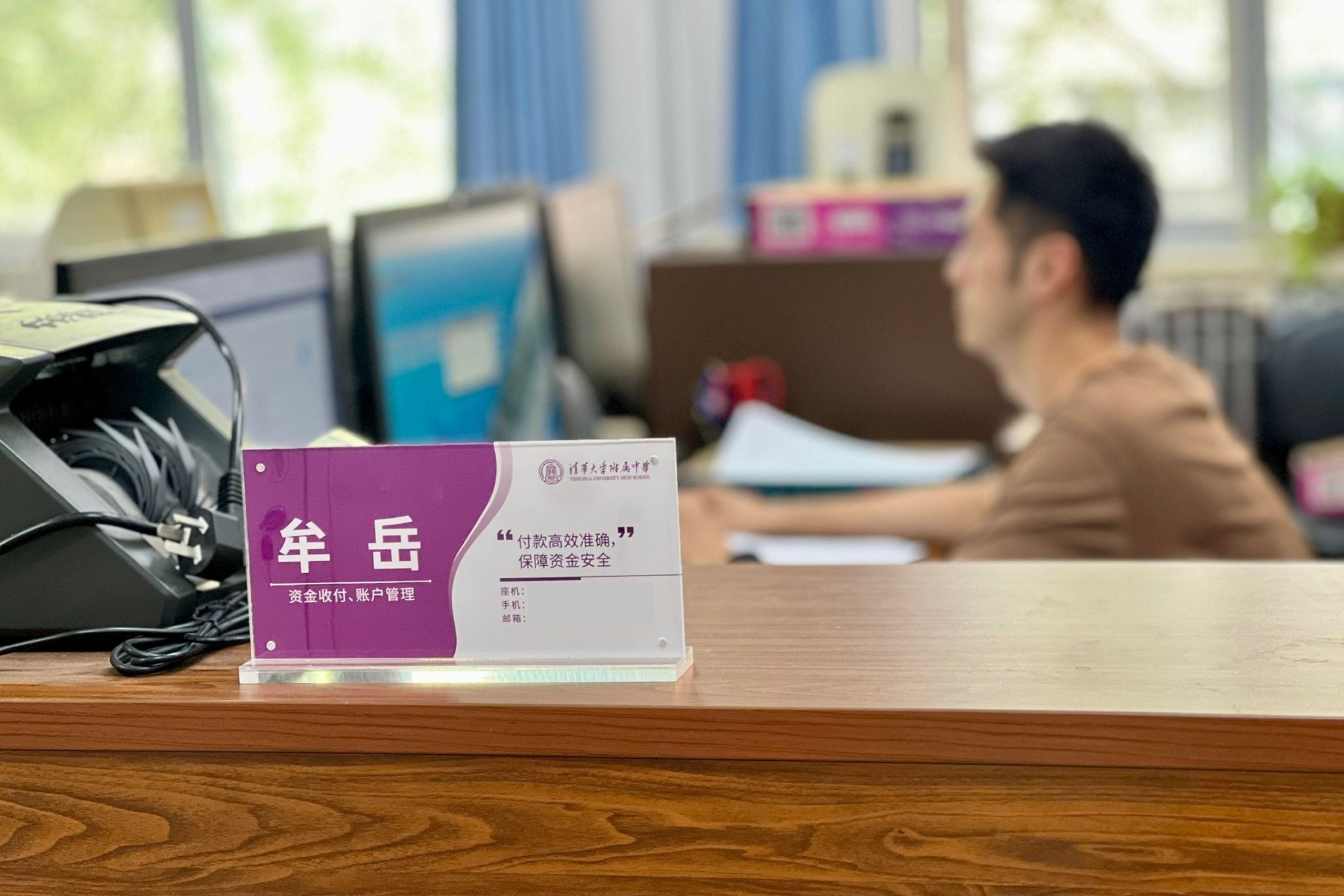 目前学校为职员统一制作的工作立牌和职能办公室门贴均已投入使用。各部门办公场所标识清晰,面貌焕然一新,得到一线教师好评。