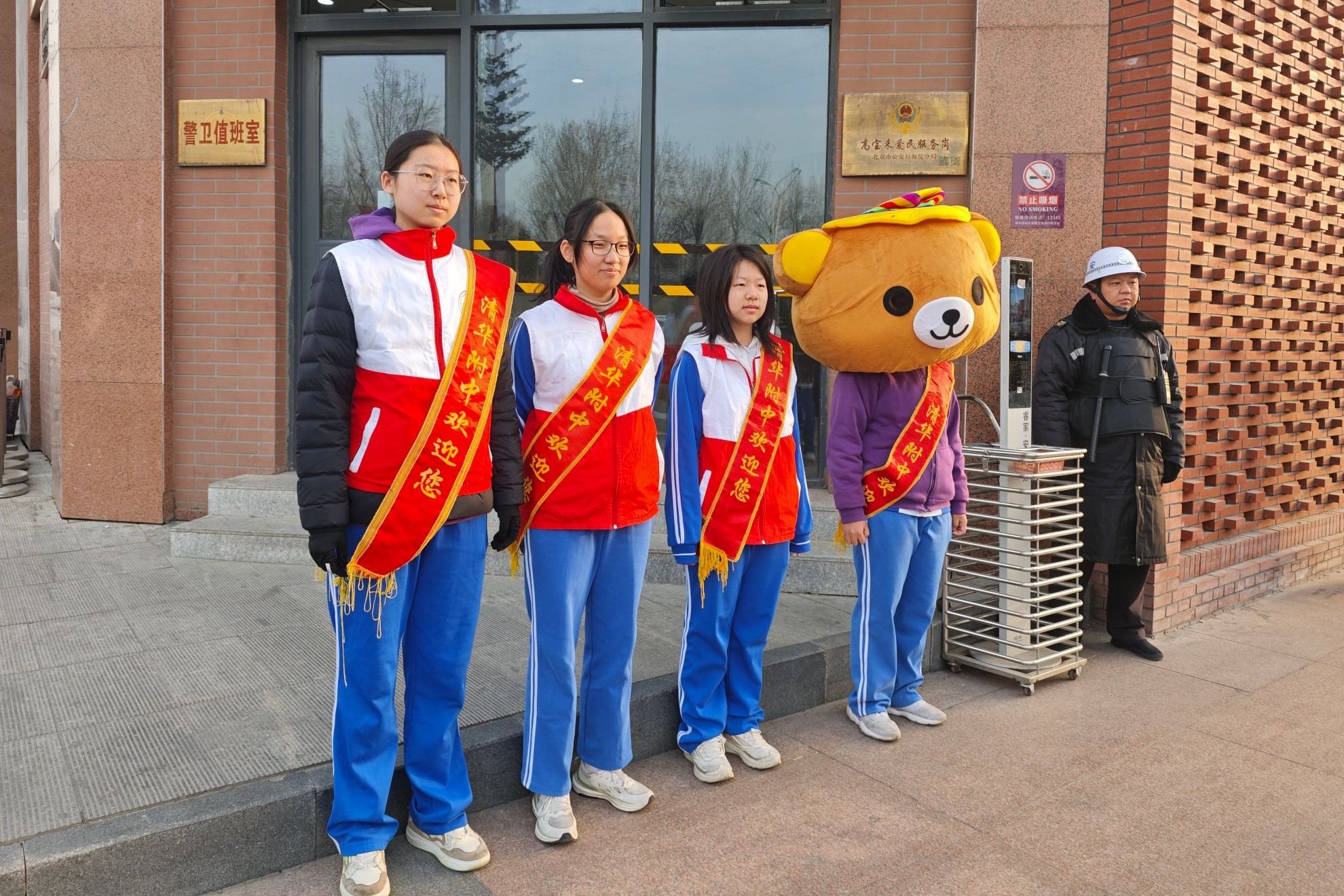 高2308班揭旧春联、高2303班制作校园赏花图、水木行动班级打扫操场看台、高2412班整理公共教室