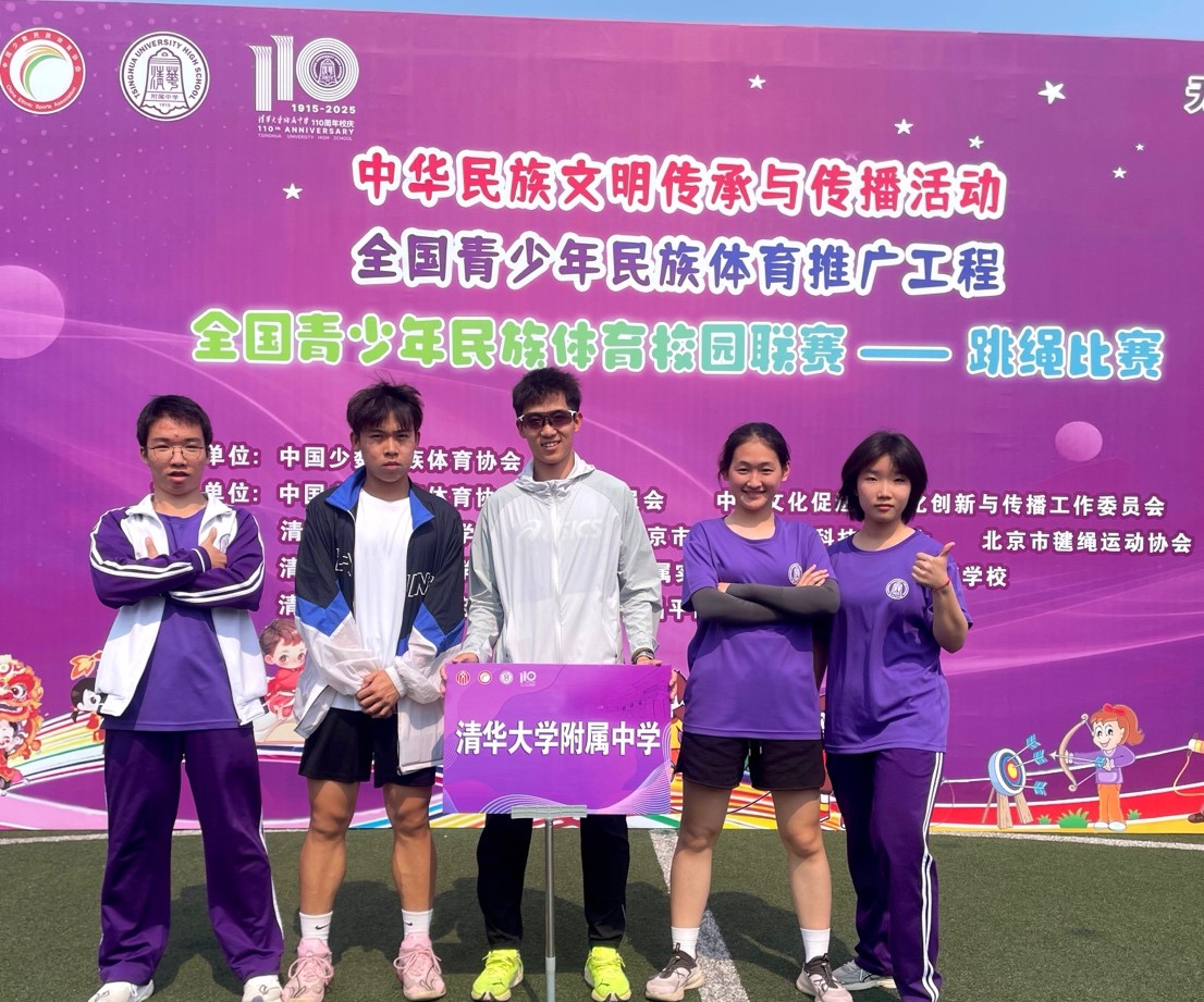 付帅带领的初中女子队成绩:初一(5)班汤沐文在30秒双摇项目中和初二(8)班暴甜甜、李心迪在“一带一跳”项目中双双夺得全国冠军;初一(12)班姜帛欣夺得30秒双摇第三名;初二(5)班吴若青和初二(6)班魏灿分别在30秒单摇项目中获得全国第四和第六名;初三(17)班许忆丹在编花单摇项目中荣获全国第四名。初中女子组还在3—5 分钟集体表演项目中取得全国第七名的佳绩,充分体现了团队的配合与创意编排能力。侯珏文带领的高中跳绳队:高一(9)班房皖豫和高一(5)班边浩宇分别夺得女子、男子30秒双摇项目全国冠军;高二(17)班曾宝文和高一(9)班刘家郝分别在30秒单摇项目中获得全国第二名和第五名。