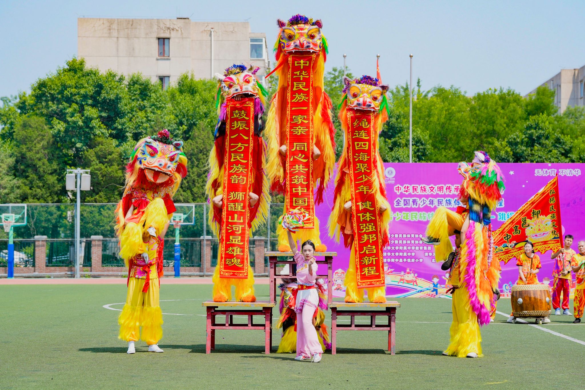 第一个节目是广西柳邕高级中学带来的《壮乡瑞狮展雄姿》。舞狮是优秀的中华民族传统体育项目。舞狮有南北之分,其中又有众多流派,壮狮在广西传承百年,在中华舞龙舞狮中独树一帜。数十年来,广西柳邕高级中学不断探索前行,构建了由民间传承和学校体育共同组成的民族体育传承与创新的模式,将传统的“师徒传承”转变成当下的“规模教育”,让民族体育在校园推广普及。