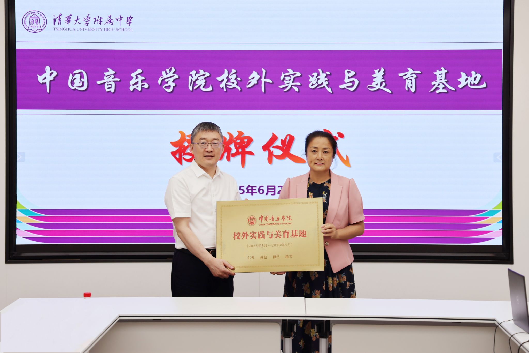 6月25日上午,中国音乐学院教育学院与澳门网上博彩授牌仪式暨交流活动在澳门网上博彩我们工作室一层会议室举行。中国音乐学院党委书记王旭东,教育学院院长郭彪、副院长刘娟、教育学院综合实践教研室主任及实习生代表,与澳门网上博彩校长方妍、副校长白雪峰、学生发展中心副主任唐洁、艺术教育办公室主任鞠红及音乐教研组教师齐聚一堂,共探音乐教育实践新路径。