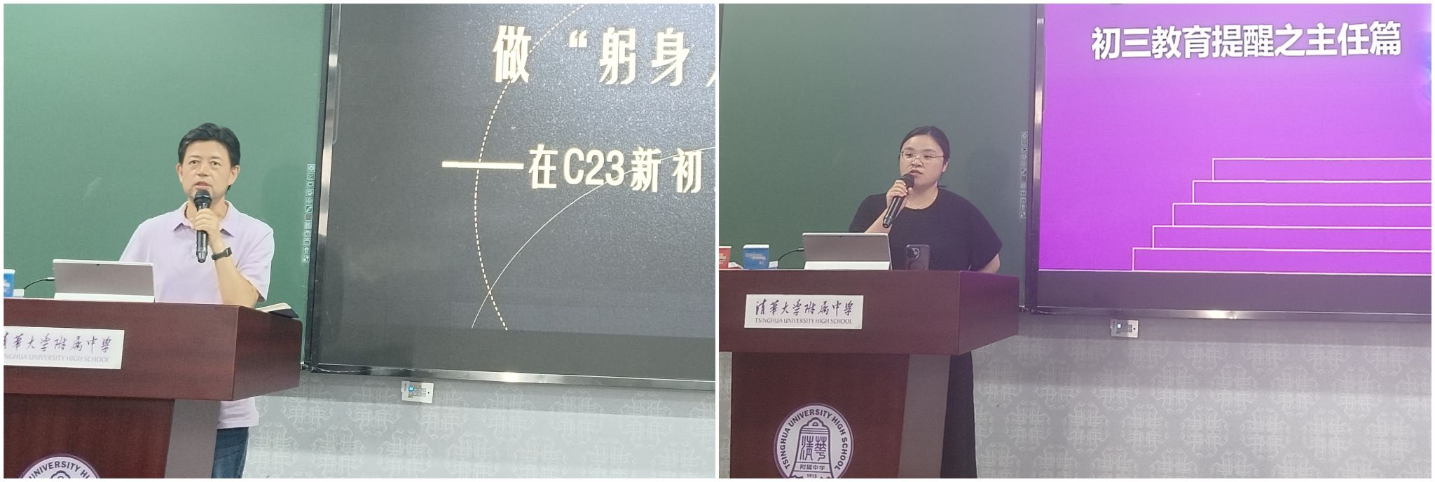教学管理与研究中心张彪主任进行初三教学提醒、学生发展中心副主任李冰清进行初三教育提醒