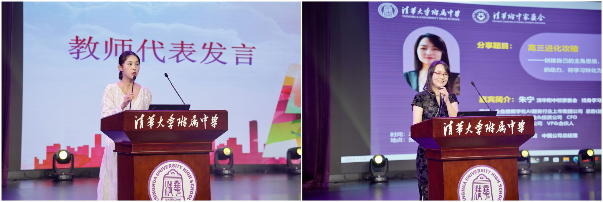 教师代表李敏婧老师、家长代表朱宁女士发言
