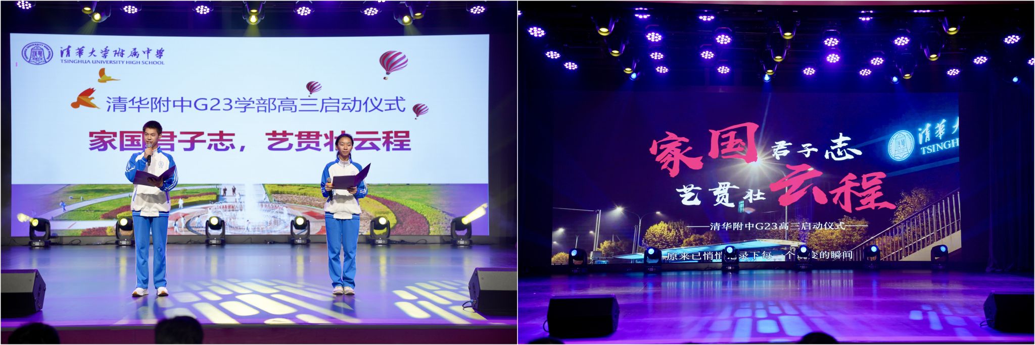 高三启动仪式主持人李思睿、李泽仁,视频回顾两年高中生活