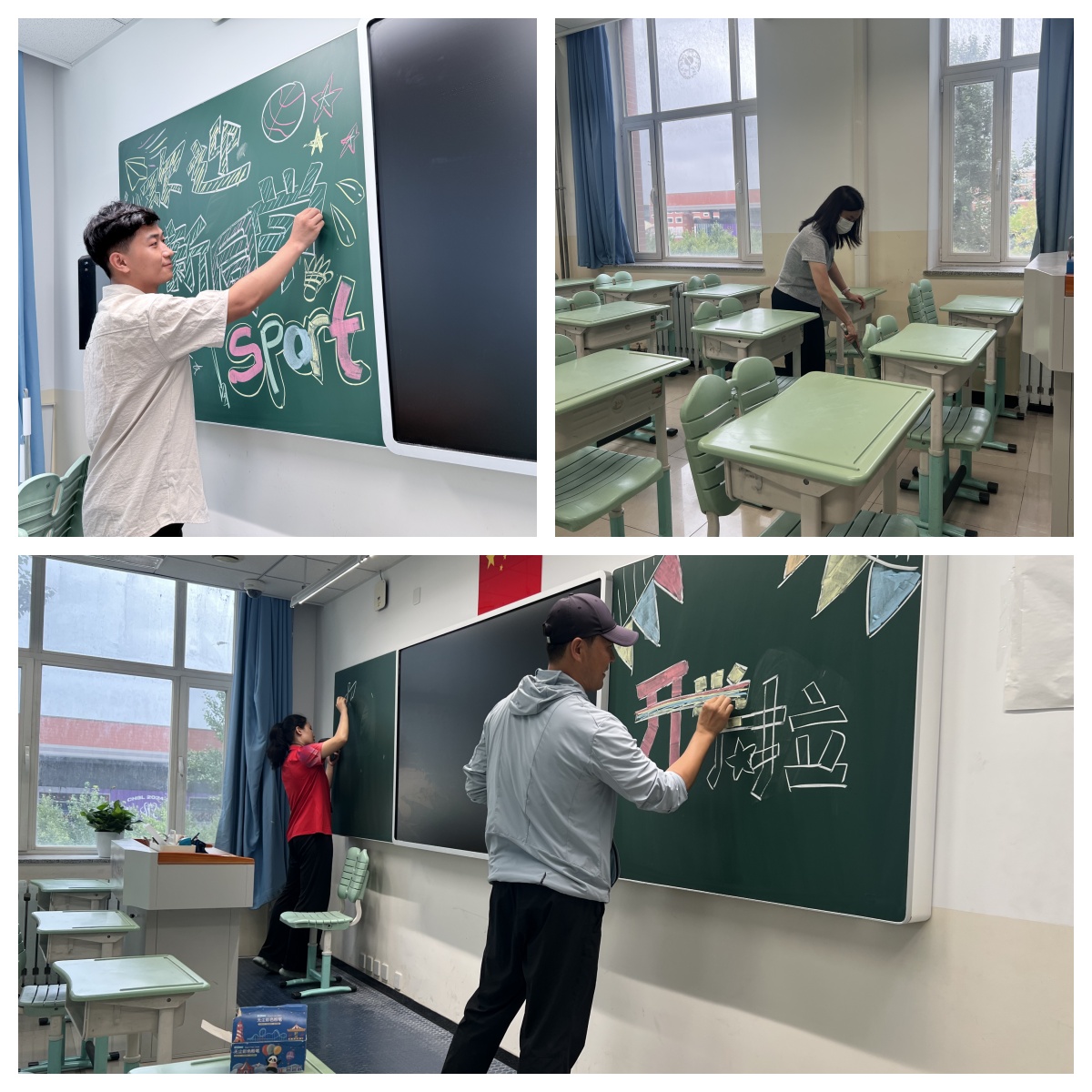 下午,初25学部的班主任与见习班主任齐心协力,紧锣密鼓地开展迎接新生的准备工作。为给新生营造温馨的班级氛围,班主任们亲自对班级环境进行了清洁和整理,对黑板报进行了精心绘制。