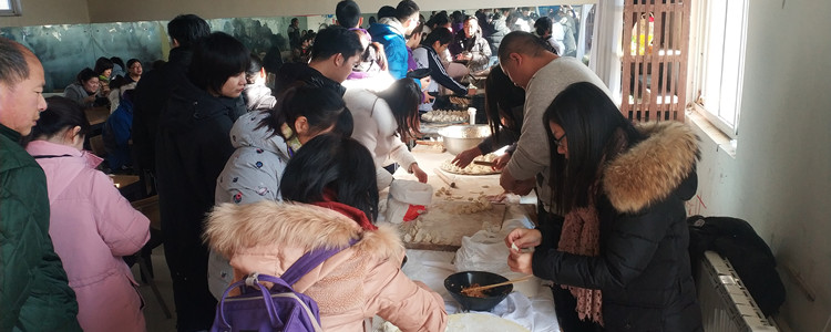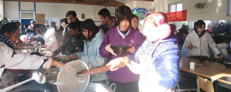 午饭时间,大家和太阳村的小朋友一起包饺子,人多力量大,不一会大伙儿就吃上了热腾腾香喷喷的水饺。大家都感到了家的温暖与幸福。