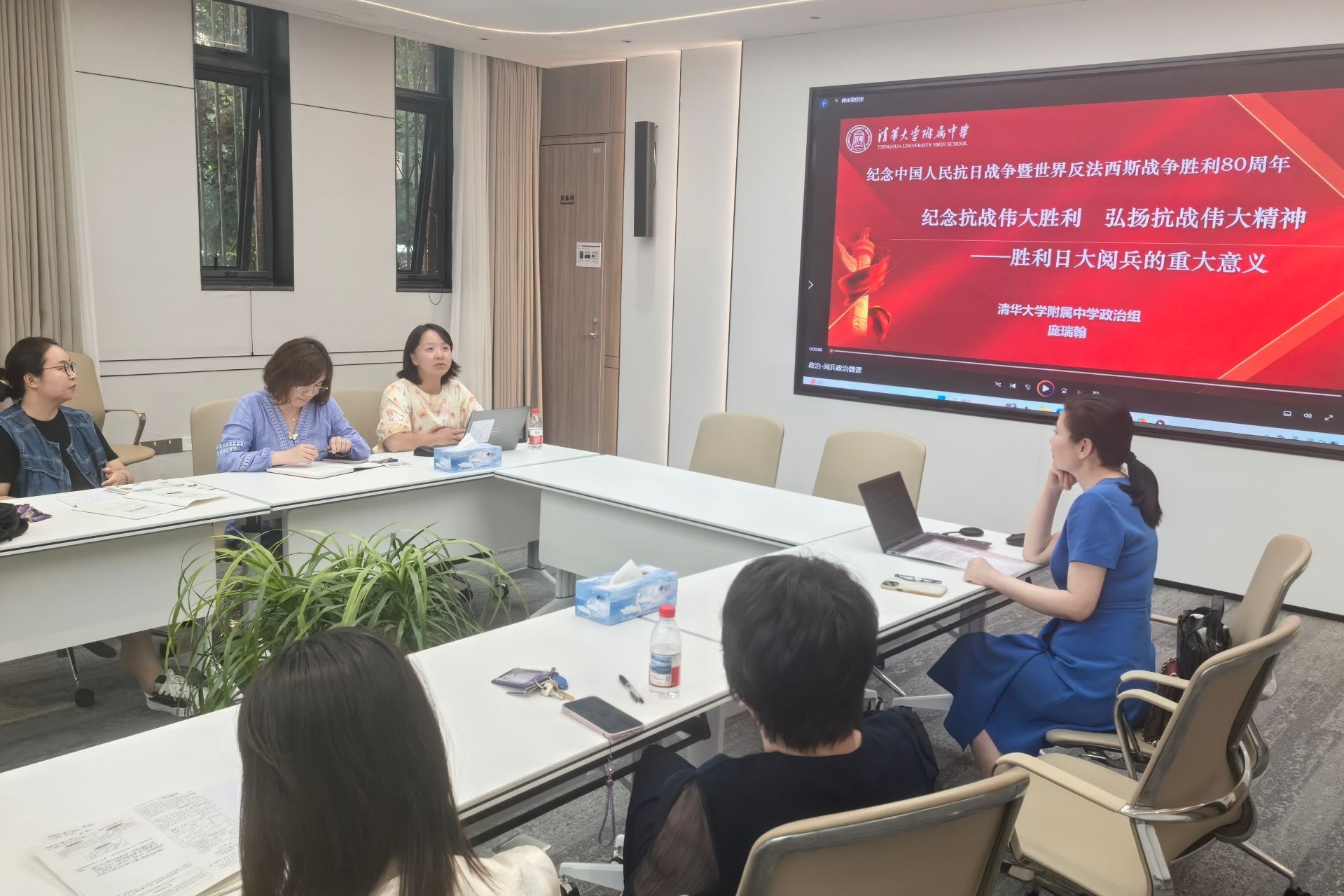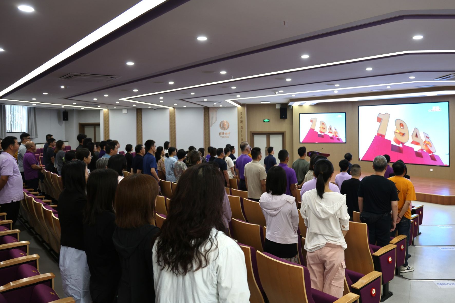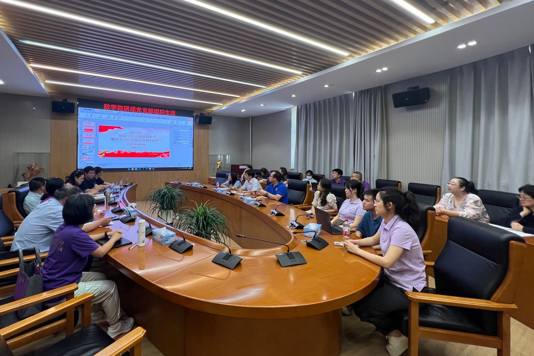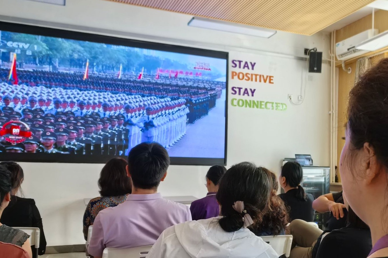 全体职工在校集中观看纪念中国人民抗日战争暨世界反法西斯战争胜利80周年大会直播