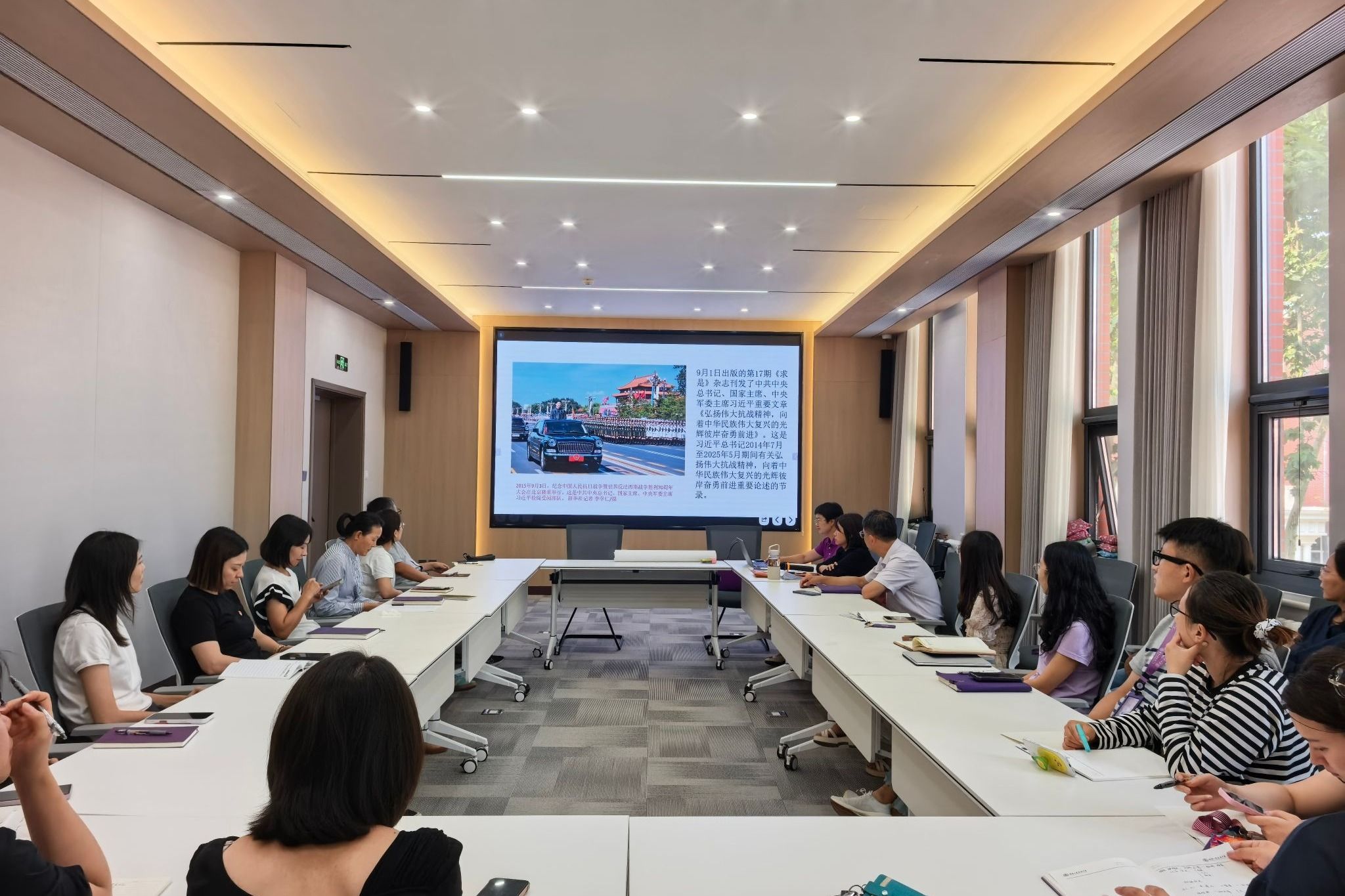 随后,全体党员共同学习了9月1日出版的第17期《求是》杂志刊发的习近平总书记重要文章《弘扬伟大抗战精神,向着中华民族伟大复兴的光辉彼岸奋勇前进》。通过学习,党员们深刻理解了伟大抗战精神的内涵,纷纷表示要将这种精神融入日常教学,引导学生铭记历史、传承精神。