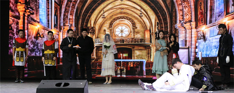 同样是《罗密欧与朱丽叶》的经典桥段,3班同学们对剧本进行了颠覆和创新,用古今对比、时空对话的形式演绎了现代版罗密欧与朱丽叶,表达了其对“人生选择”这一话题的深入思考。