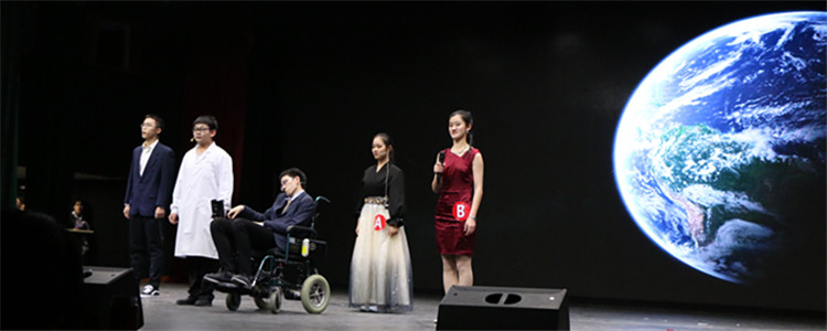 7班的同学们将霍金生命的可贵以及其所迸发的强大的精神力量娓娓道来,给在场的每一位同学带来了奋斗的信念和勇气。