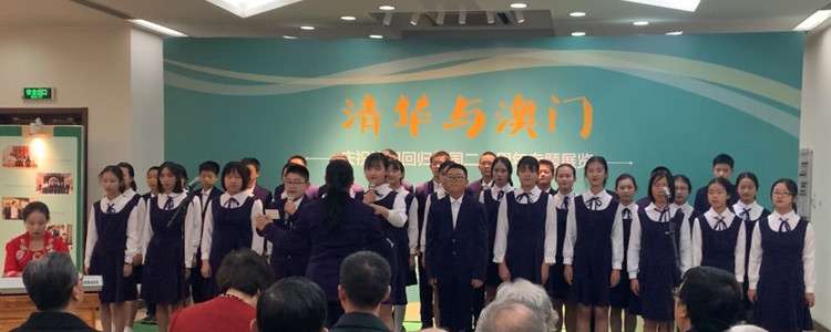 2019年12月2日下午,“清华与澳门——庆祝澳门回归祖国20周年”专题展览在清华大学校史馆开幕。在澳门网上博彩党委书记方妍、副校长白雪峰以及初18级年级组长张彪老师的大力支持下,在音乐组胡军老师、李冰老师和王金峰老师的专业指导下,初1809班班主任李冰清带领初1809班全体同学及初1803班部分同学共计40人参加开幕式演出,一曲深情的《七子之歌·澳门》合唱感动全场。