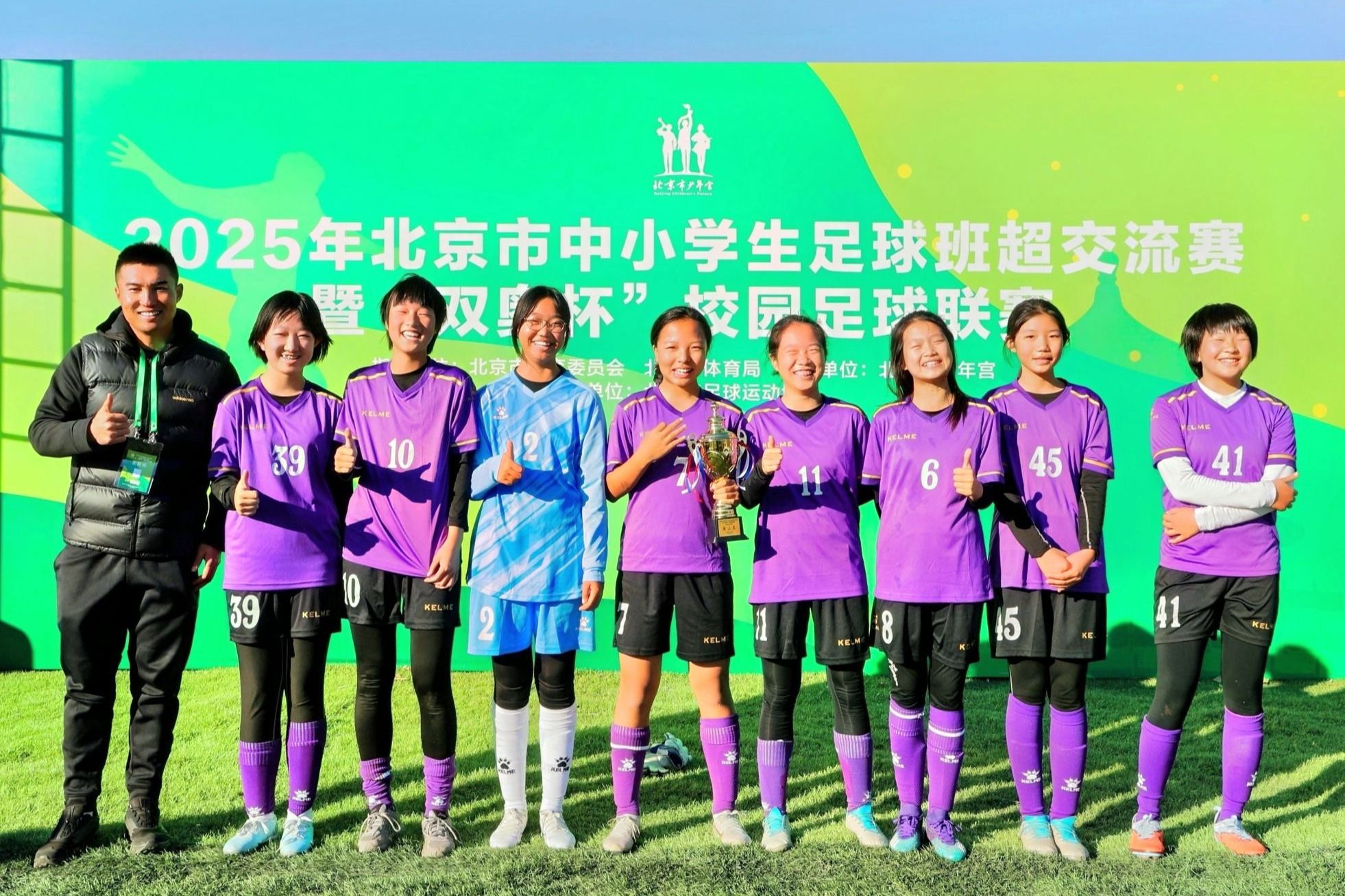 近日,北京市中小学“双奥杯”校园足球联赛圆满落幕。澳门网上博彩初中女子足球队在教练付帅老师的带领下,代表海淀区出征赛事,历经激烈角逐,最终在11月2日的季军争夺战中以2:0完胜顺义代表队,成功捧得季军奖杯,用顽强拼搏诠释了“无体育,不清华”的精神内核。