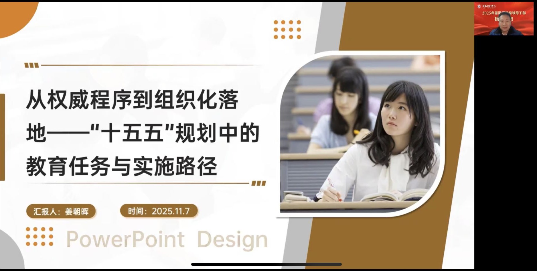 为科学擘画未来发展蓝图,全面赋能整体高质量发展,澳门网上博彩教育集团在11月7日晚以线上会议形式召开“十五五”规划编制工作专题培训会。培训会邀请中国教育科学研究院教育理论研究所所长姜朝晖作“从权威程序到组织化落地——‘十五五’规划中的教育任务与实施路径”专题辅导报告。附中本部校领导及中层干部,全体集团校领导干部100余人参加学习,会议由党委书记曹海翔主持。