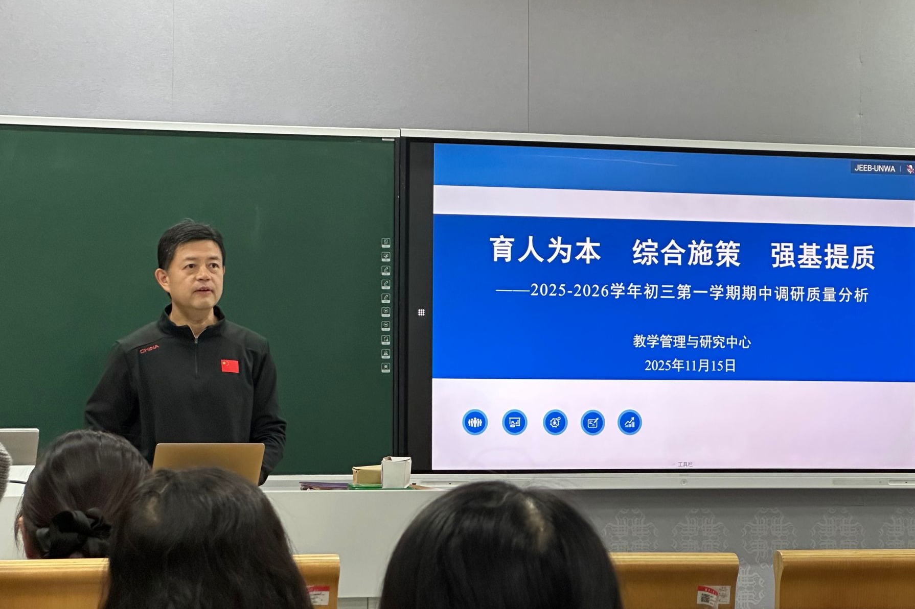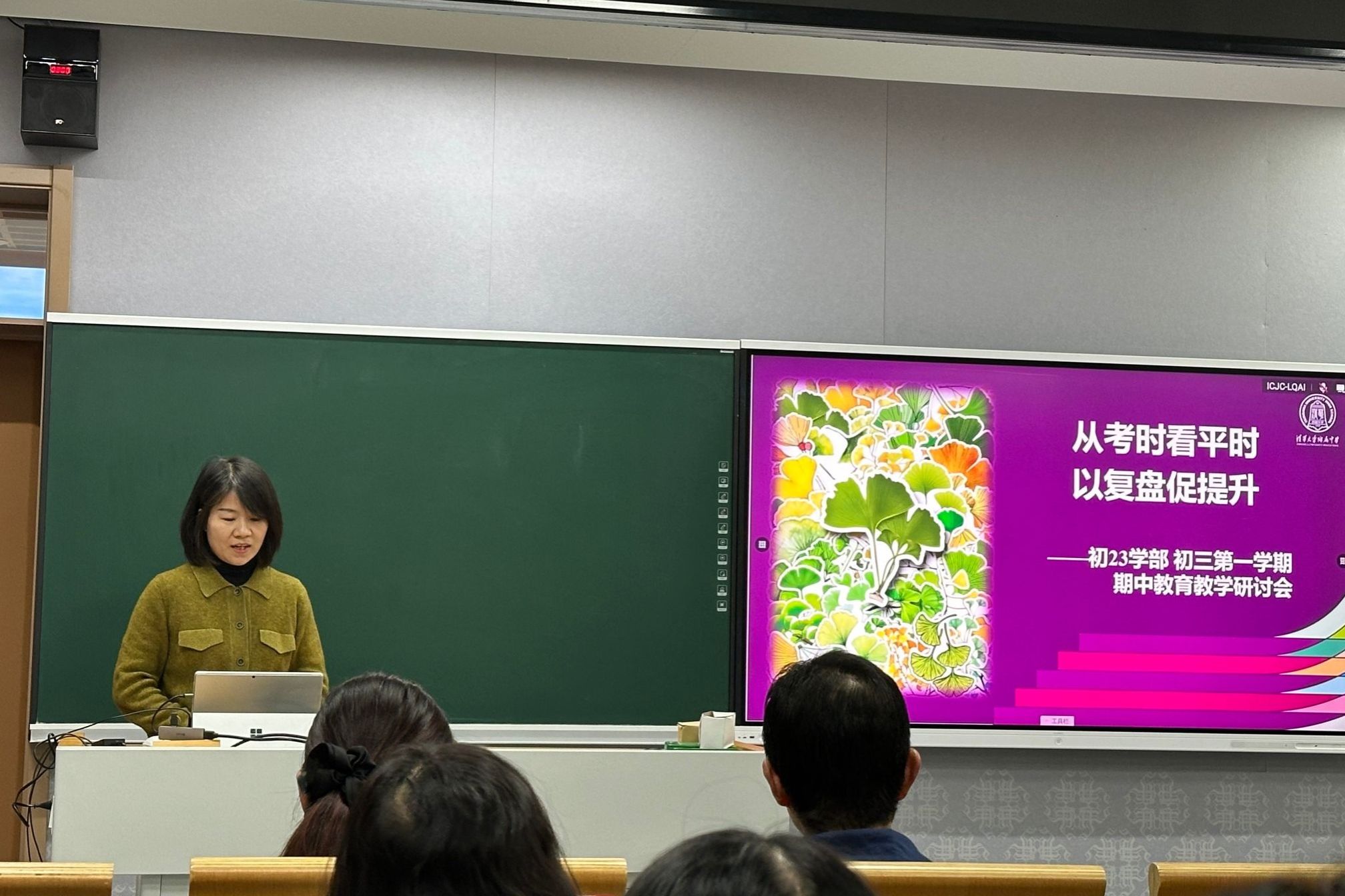 11月15日,为精准复盘期中教学成效,明确后续育人方向,凝聚教育教学合力,初23学部以“从考时看平时,以复盘促提升”为核心主题,召开期中教育教学研讨会。出席会议的有澳门网上博彩校长方妍,副校长张洁、徐文兵、张苏、李劲松,教学管理中心主任张彪、学生发展中心副主任李冰清,初23学部主任张晓琼、副主任周小玲。全体初三教师、班主任全程参与,通过多维度研讨、精准化分析、针对性部署,为冲刺中考筑牢根基。会议由周小玲主持。